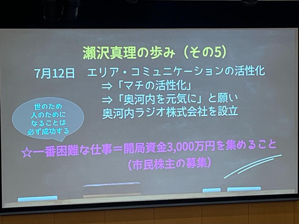 私は中学3年生ではありませんが、瀬沢さんの授業を聞いてとてもわかりやすかったし、夢を追いかけてラジオ放送局開局にこぎつけようという想いが伝わり、陰ながら応援したいと思いました。