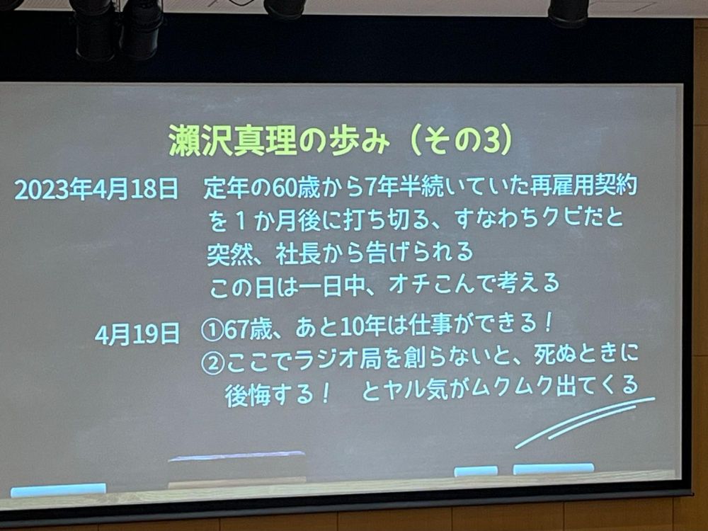 ところが、定年後も7年間再雇用として働いていたのですが、突然の契約打ち切りという事態に衝撃を受けます。普通ならこの後は余生を過ごすとなりますが、瀬沢さんは、ラジオ局開局という長年の夢に舵を切りました。