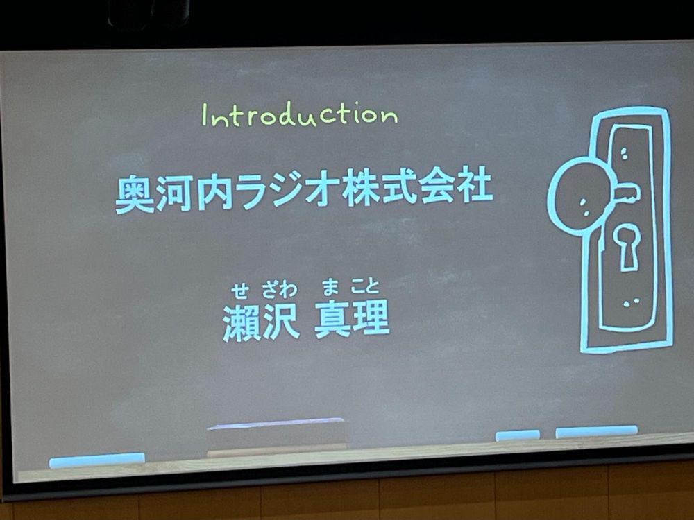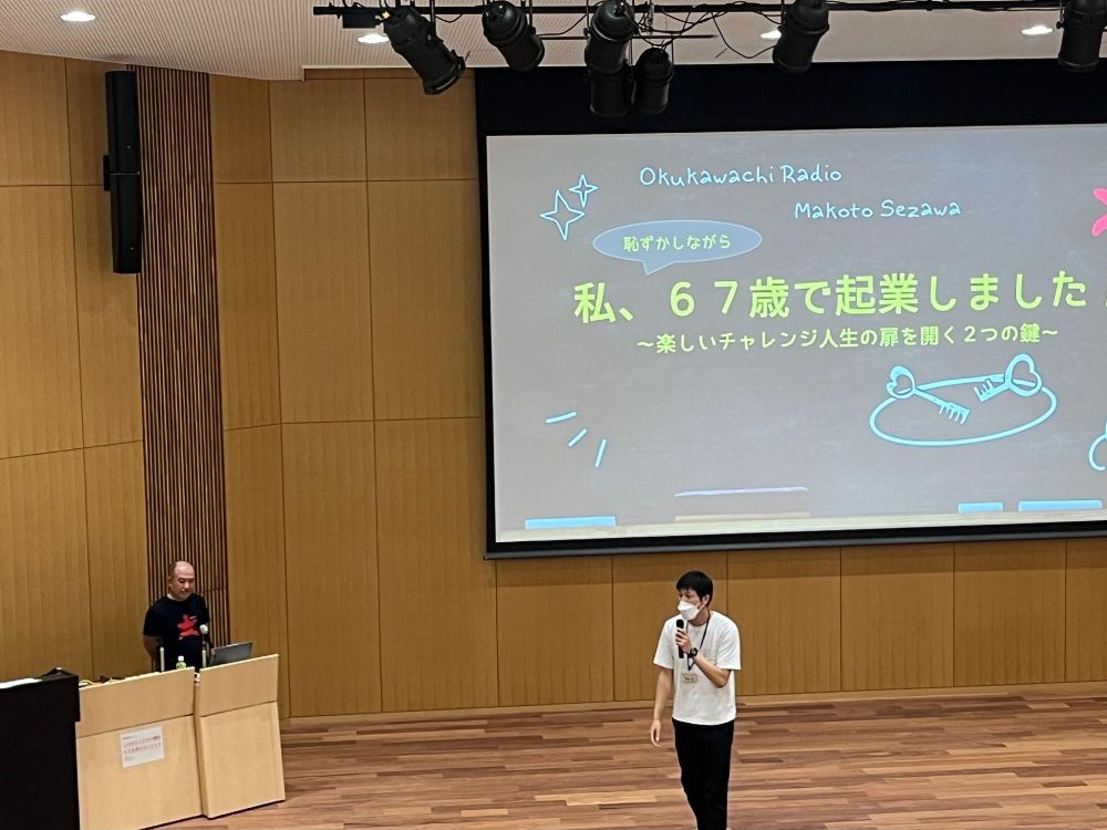 奥河内ラジオの代表の瀬沢さんが壇上に立ちます。