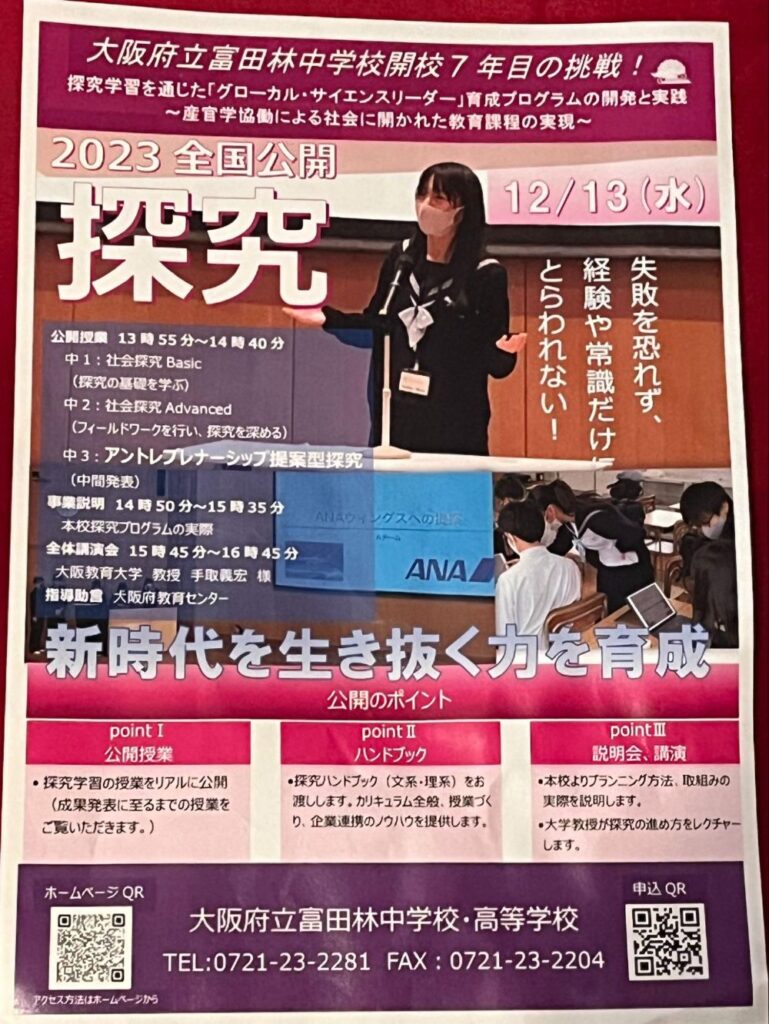 とても気になったので大阪府立の中高一貫校 富田林中学・高等学校に行ってきました。とんこう地域フォーラム2023でお邪魔したことがありますが、そのときは公立高校の進学校の実力を痛感する素晴らしい内容でした。