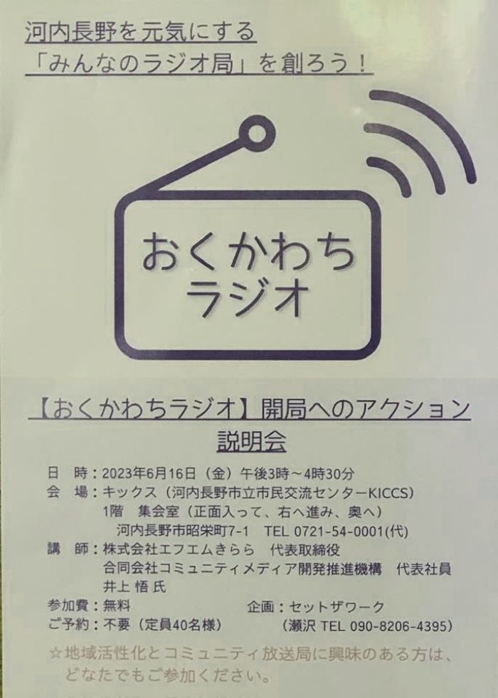 ということで、河内長野に来年コミュニティFM局「おくかわちラジオ」が設立する動きがあるということを紹介しました。