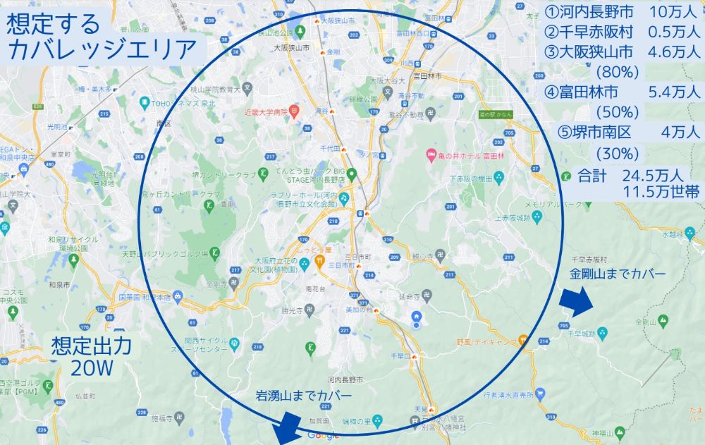 また瀬沢さんからあくまで未確定ですが、おおよそ放送受信できることを予定しているエリアが発表されました。これによると河内長野市の外にも広く受信ができるようなことを想定しているようです。