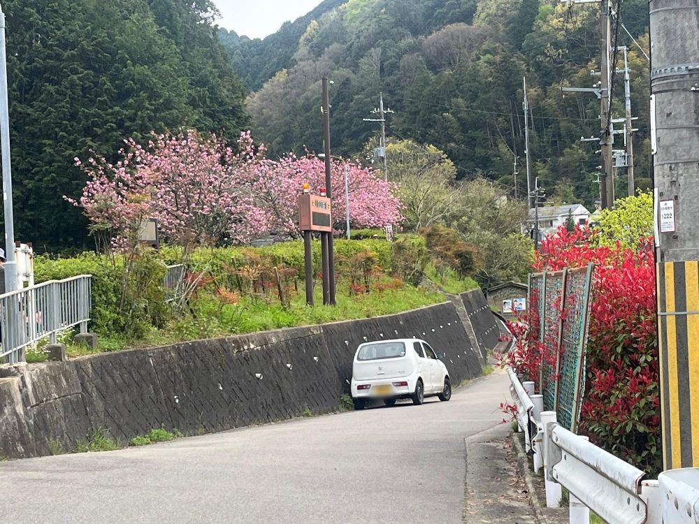 天見駅に戻りそのまま帰ろうかと思いましたが、2年前に見た時に天見小学校側も少し八重桜があるとのことなので、駅を過ぎて見に行って来ました。