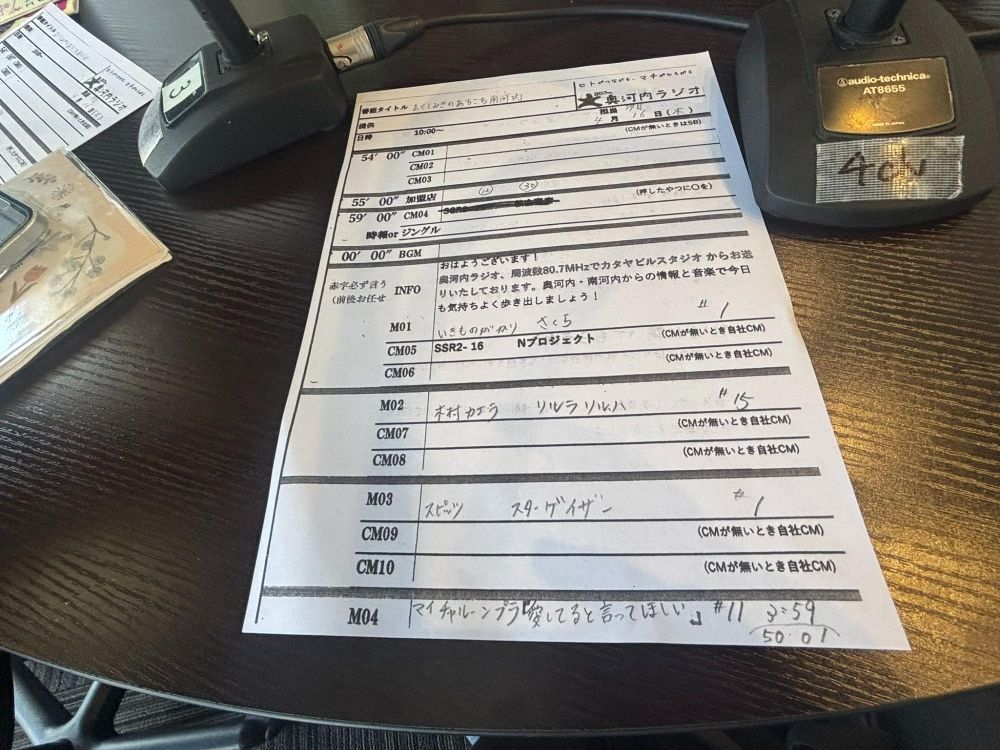 流す音楽は、局側で用意しているもののほか、持ち込みも可能ということで、最後に流す曲を持ち込みました。ちなみに最後の曲は普通は流れないような、東南アジアの曲でお願いしました。