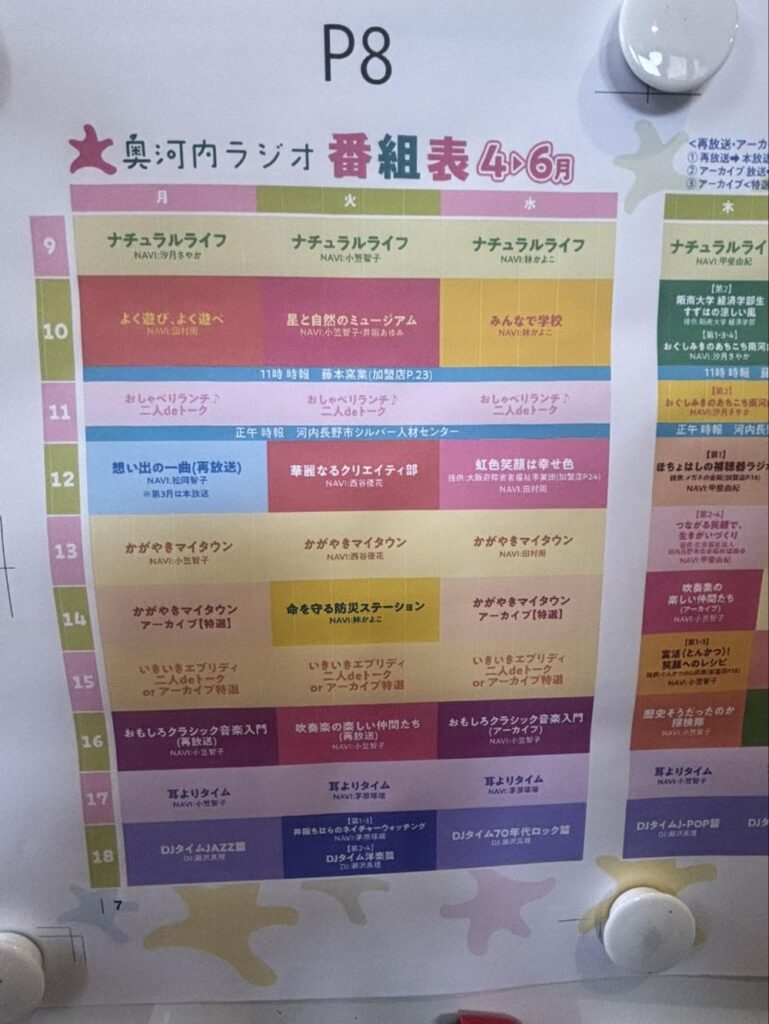 このほかにも歴史、クラシック、吹奏楽、阪南大学、防災番組など個性的な番組が揃っている奥河内ラジオ、無事に2年目を迎え、ますます地域に密着したコミュニティラジオになっている気がしました。そしてその一部に参加させていただくことができましたので、目だけでは無く耳からも南河内の情報を発信できればと思います。