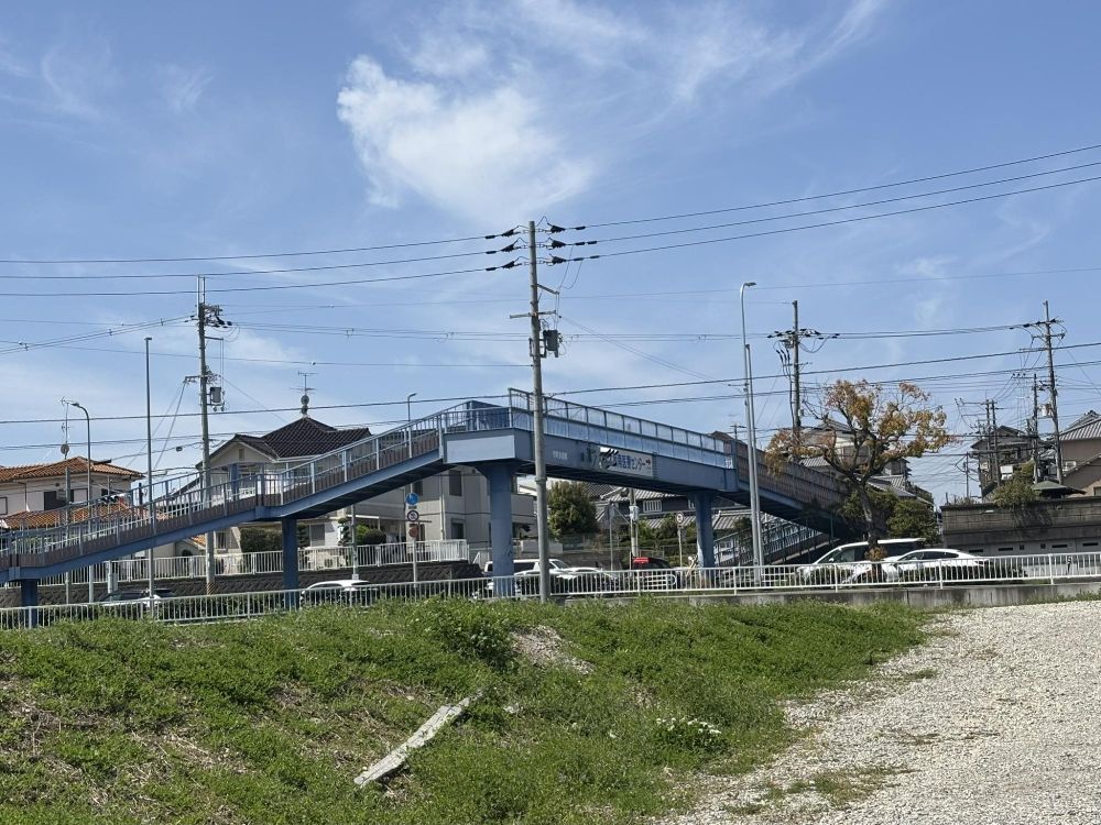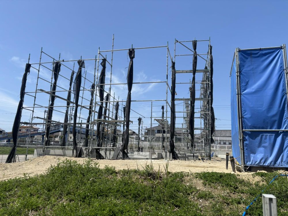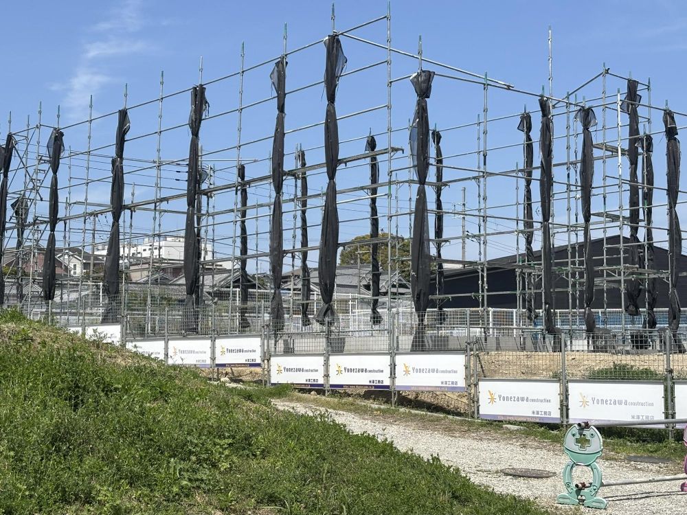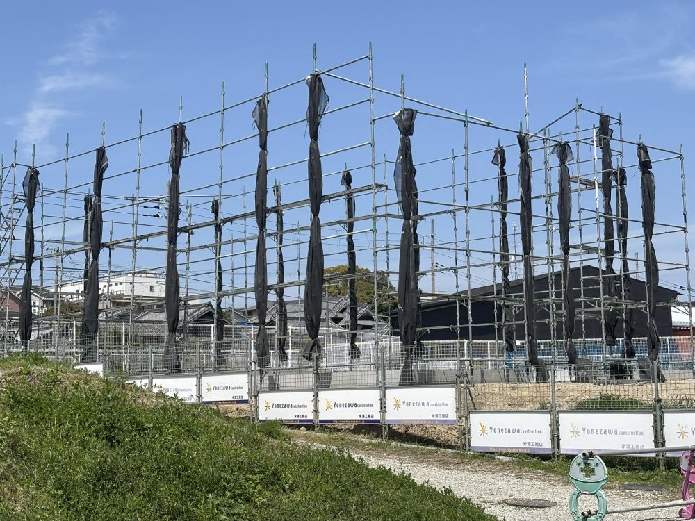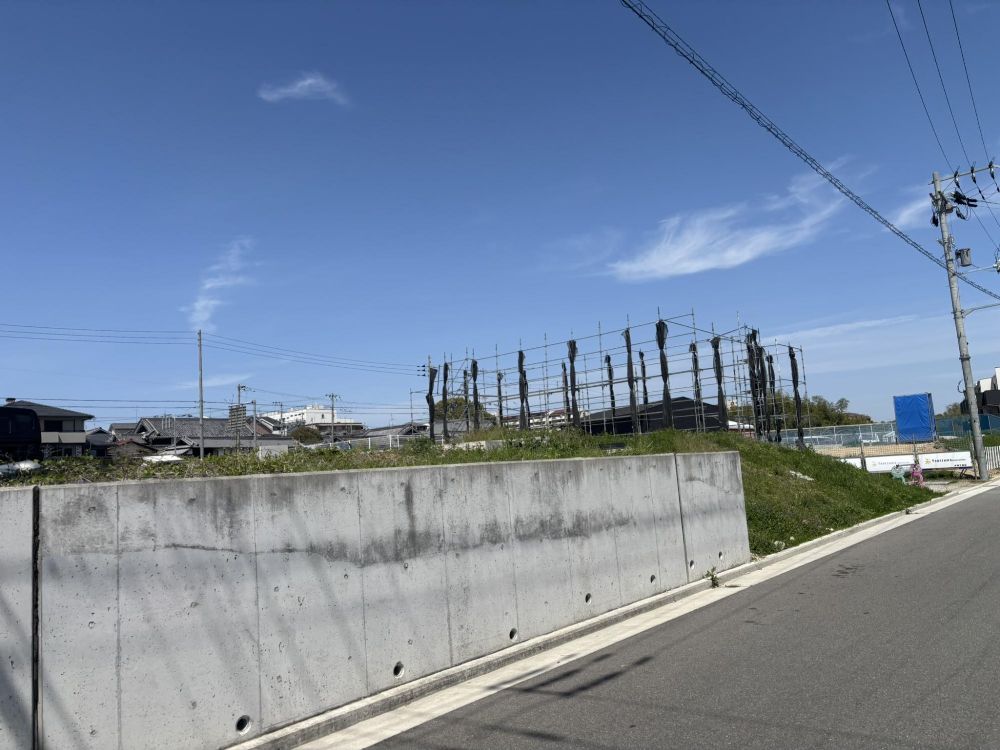 市町交差点から、近鉄汐ノ宮駅方向に向かう際中、サラダ館外環市町店やまおかのあたりで左に続く道沿いに歩くと骨組みが見えてきます。