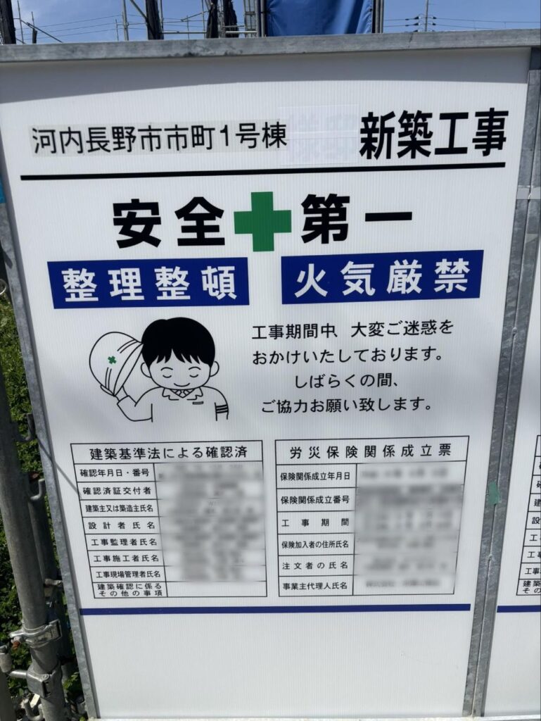 米澤工務店(外部リンク)と書いてあります。調べると主に堺市と松原市を拠点としている工務店さんですが、河内長野の物件にも進出してきたようです。