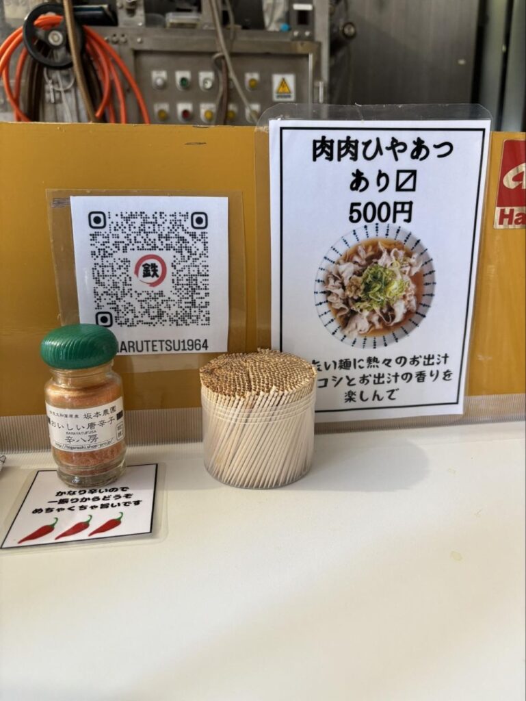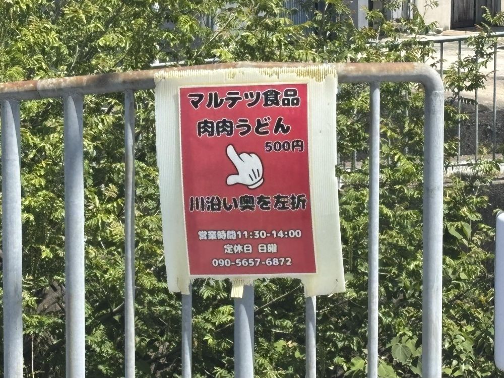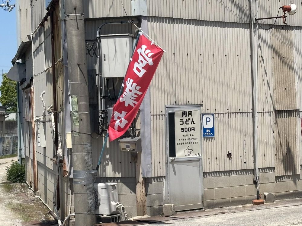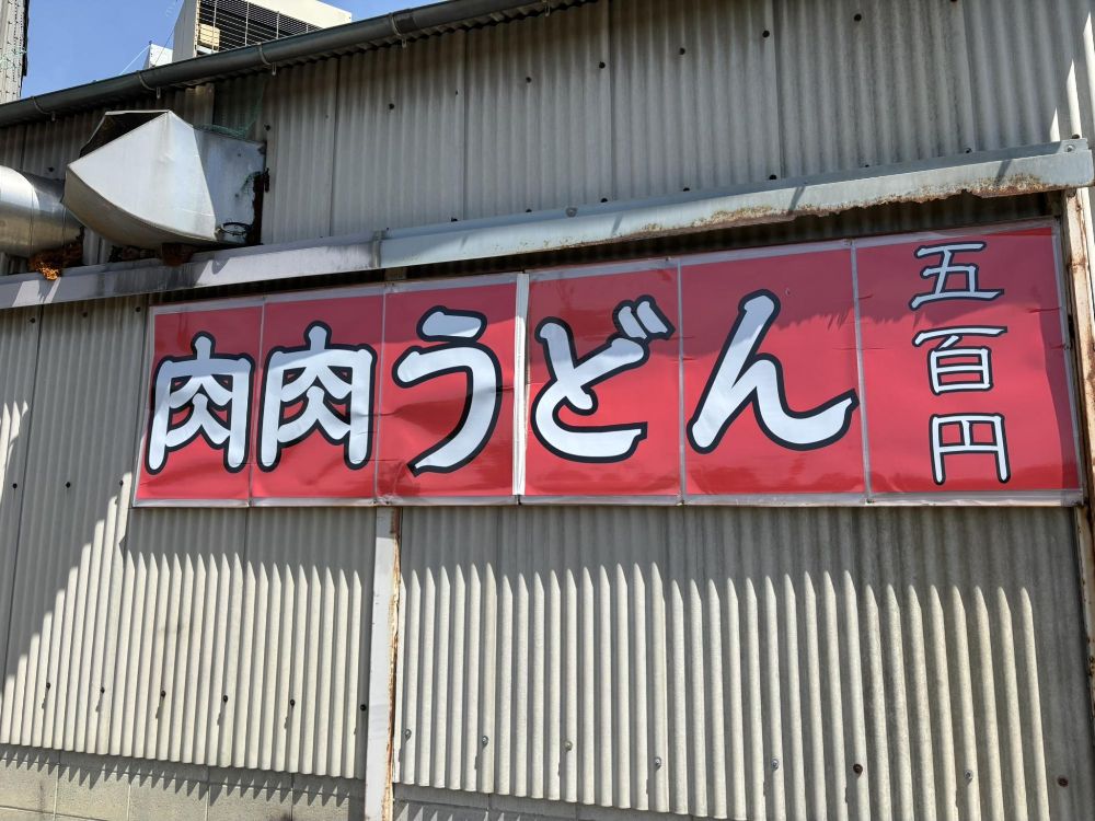 しかしご安心ください。こちら「マルテツ食品肉肉うどん500円」の表記があり、本当にうどん屋さんがあることがわかります。ワンコインで「肉肉」と肉が強調されたうどん、これは期待が持てますね。