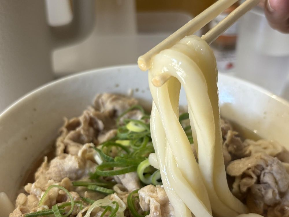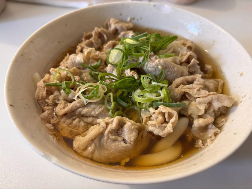 いよいようどんができたようです。遠くから見ても肉が見える!これは楽しみですね。