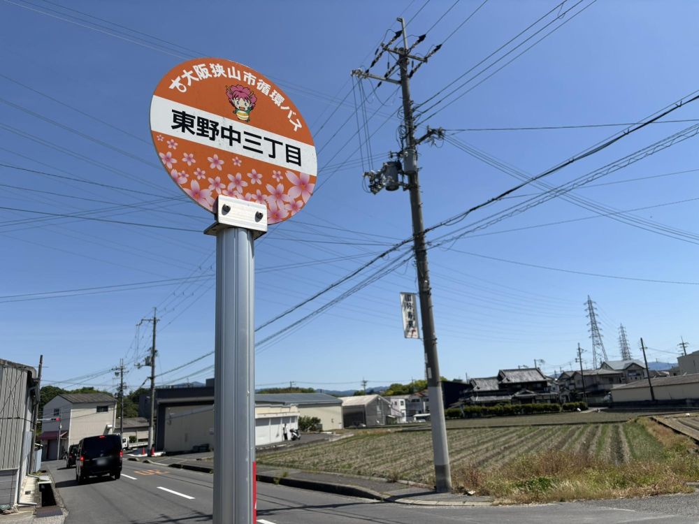 場所は東野中三丁目で、大阪狭山市循環バスのバス停から徒歩5分くらいです。