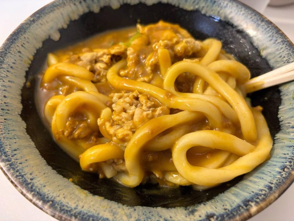 そして、中にはとろりとカレーが入っています。細かい話をすればカレーうどんのカレーは、本場インドのカレーとは似て非なるものです。