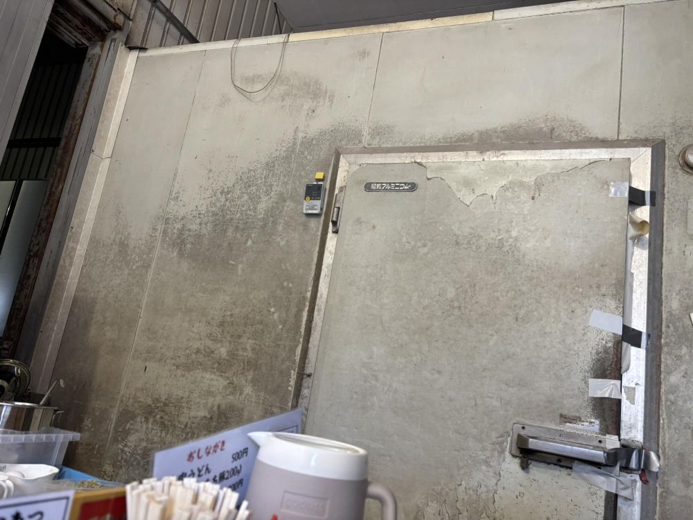 横を見ると大きな冷蔵室のドア。これを見たら、やはり工場敷地内であったことを思い出しました。