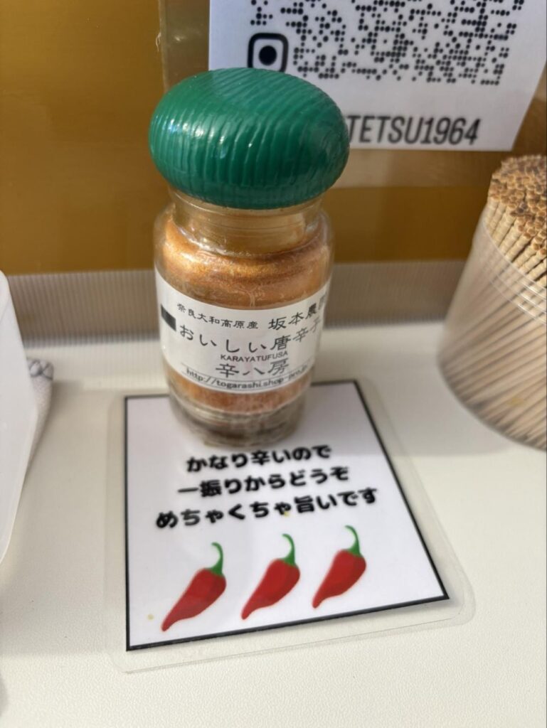 さて、そのままでも美味しいのですが、こちらの唐辛子をかけると風味が増して美味しさが増幅します。ただ注意書きに書いてある通りとても辛いので、ほんのひと振りでもピリ辛のうどんになりました。