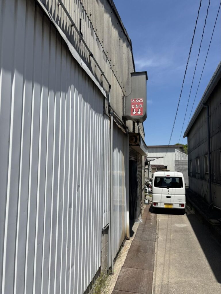 しかし、工場の建物に挟まれたところに「入り口こちら」の表記を発見しました。確認するとマルテツ食品さんはYoutubeなど動画でも取り上げられることが多いそうです。なるほど、ここまでの雰囲気は確かに動画制作者にとっても取り上げたくなる要素がありますね。