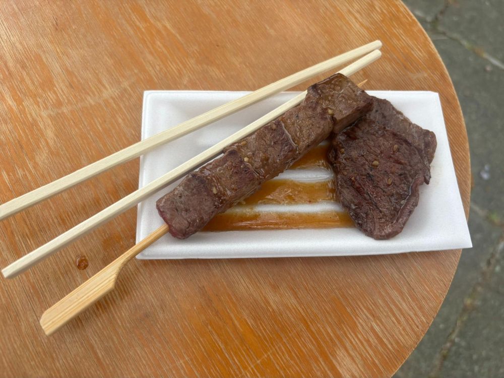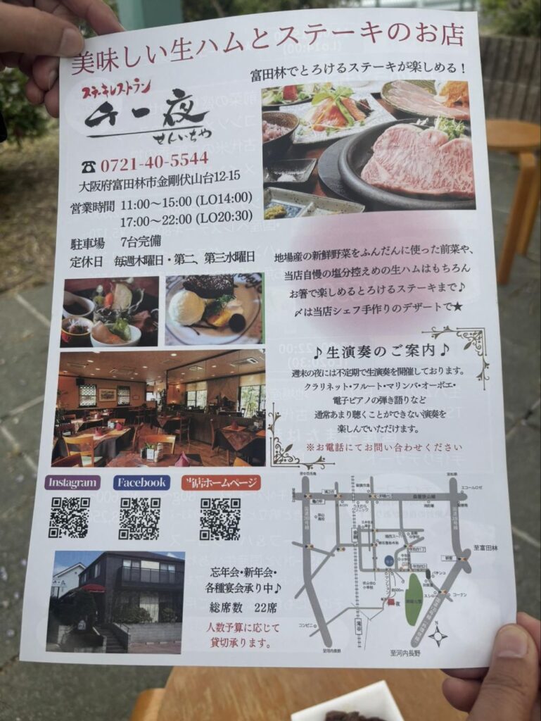 千一夜さんをおさらいすると、金剛伏山台で生ハムとステーキを提供するお店です。特別な日に行くような高級なステーキ店ですが、おんざのようなマルシェにも出店されているため、本格的なお肉がリーズナブルにいただけるわけです。