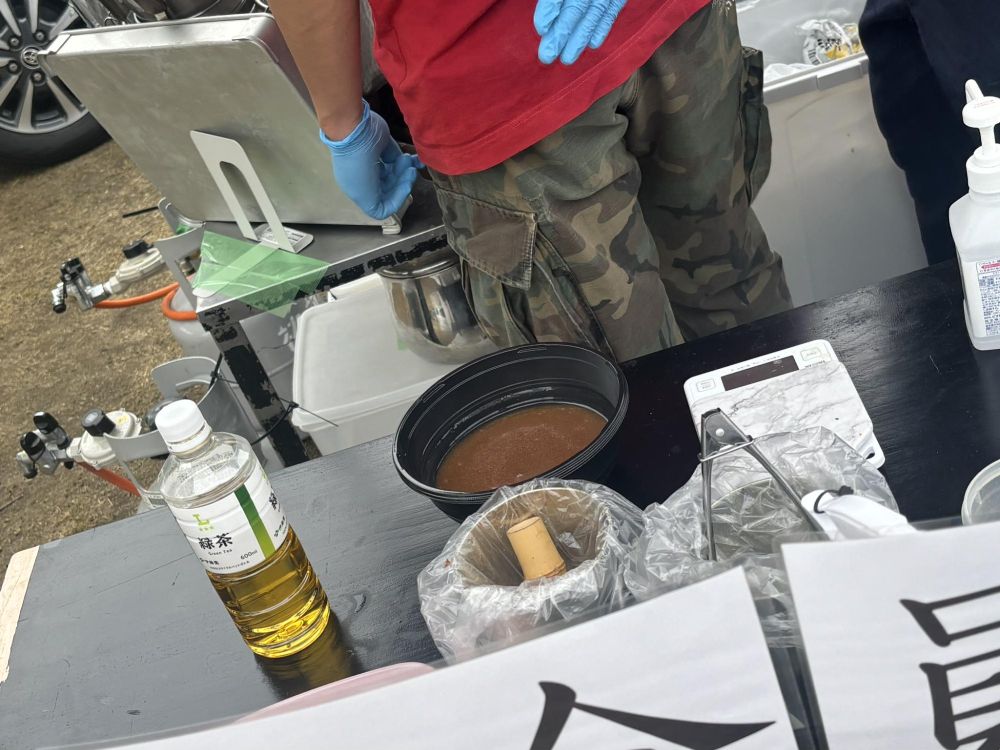 入ると受付でこちらを頂きました。中のお店で購入するとスタンプがひとつ貰え、3つ溜まると抽選に参加できます。ちなみに手書きの簡易的なスタンプラリーですが、本来は印刷されたものがあったらしく、それが無くなったというのです。つまりそれだけ午前中は多くの人が詰めかけた人気のイベントだったということと考えられます。