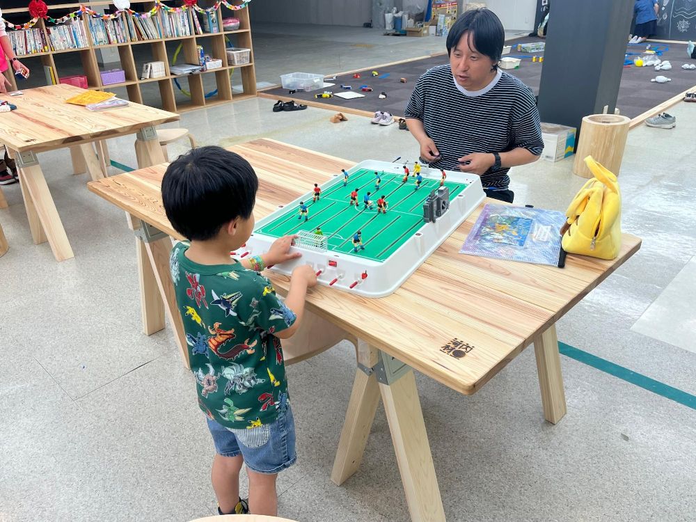 ゲームを楽しんでいる親子がいました。一緒に楽しんでいる親御さんも「家の近くにこんな場所ができてうれしい」と喜んでいました。