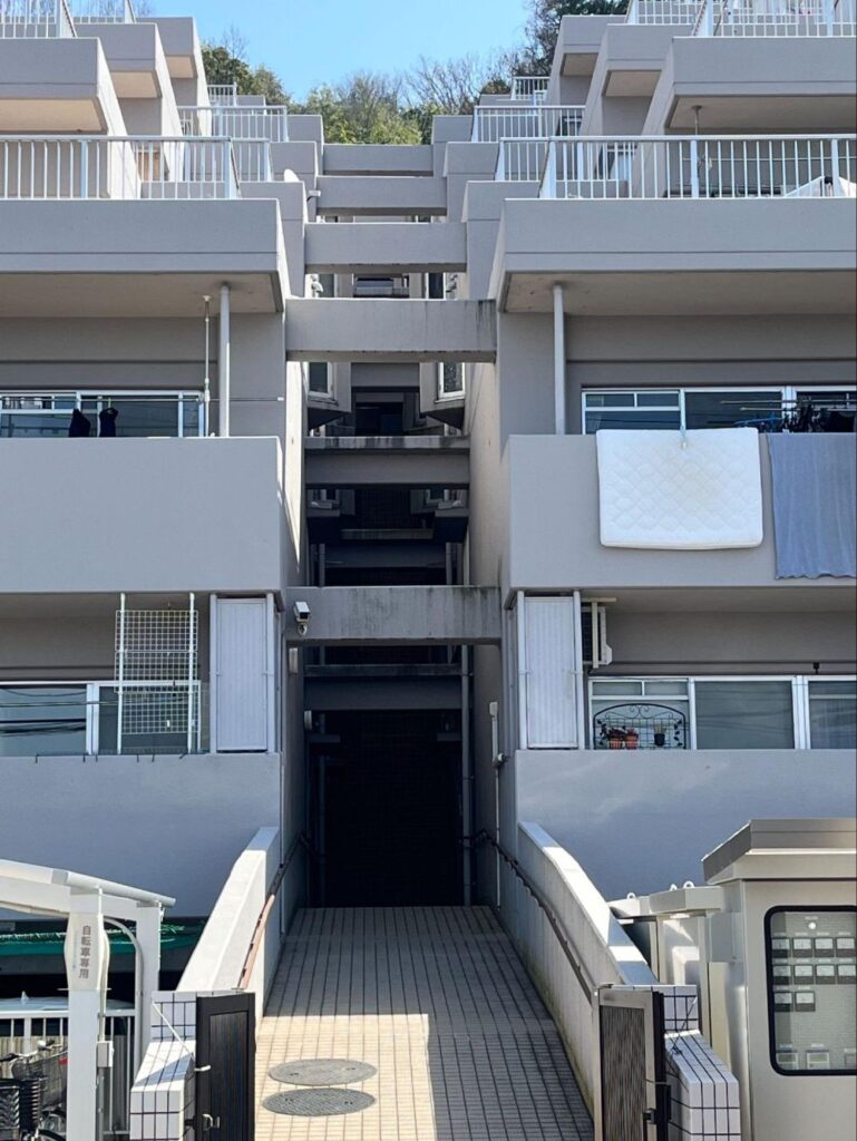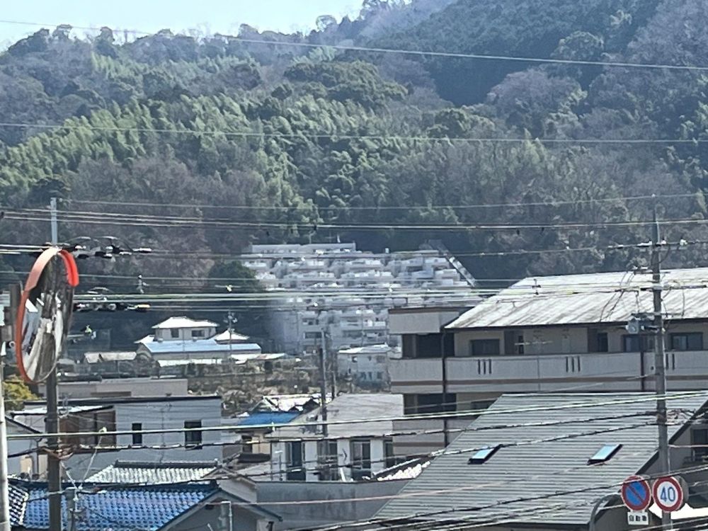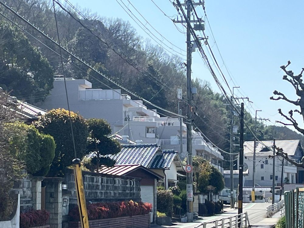 こちらです。ちょうど汐ノ宮駅を出てから見たもので、画像中央、山に張り付くように見える白亜の建築物群です。