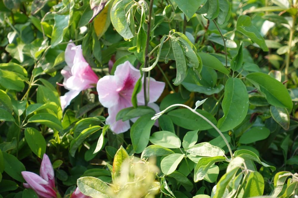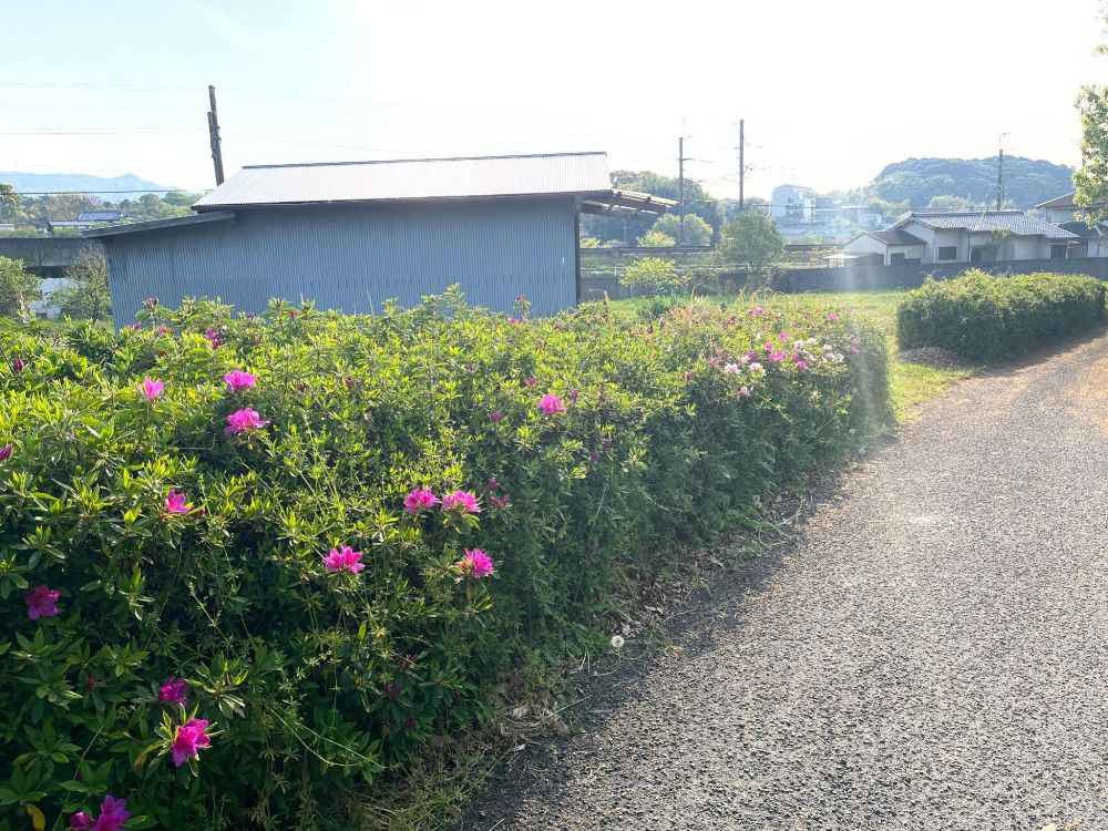 ピンクのつつじのほか、少し白っぽい花も咲いていました。そして街道と名付けたくなった理由なのですが、このように両側につつじがあったからです。